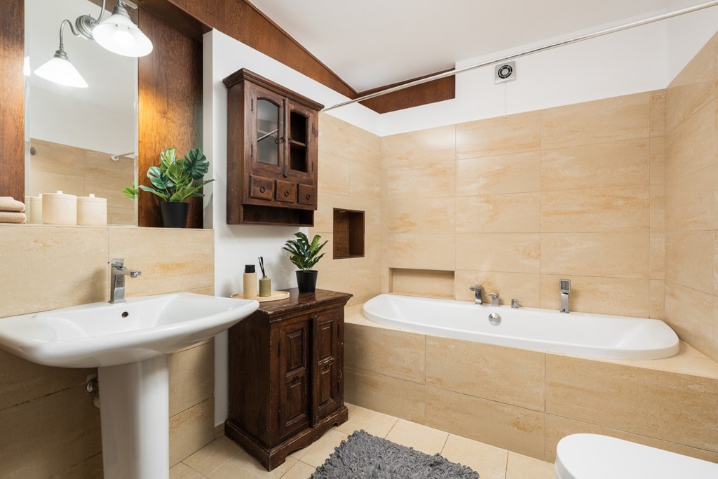 – two bathrooms – one with a bathtub, the other with a shower