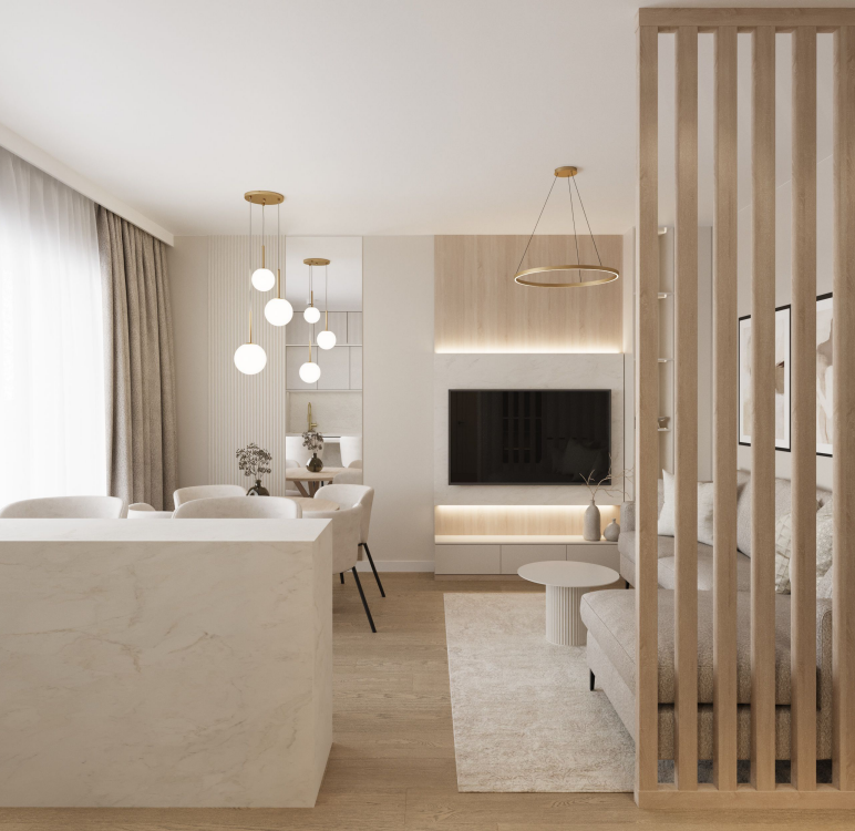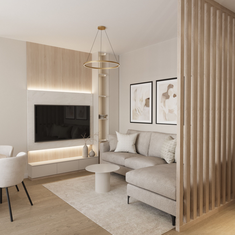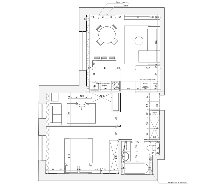 – salonu z aneksem kuchennym i wyjściem na balkon
