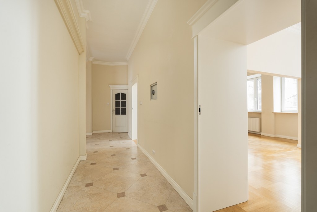 Oferujemy wyjątkowe mieszkanie położone na pierwszym piętrze, urzekające niepowtarzalnym, vintage’owym klimatem (wysokość pomieszczeń 3,3 metra!). Nieruchomość przeszła generalny remont osiem lat temu, a obecnie została odświeżona z zachowaniem oryginalnej struktury i wykorzystaniem materiałów charakterystycznych dla architektury kamienicy.